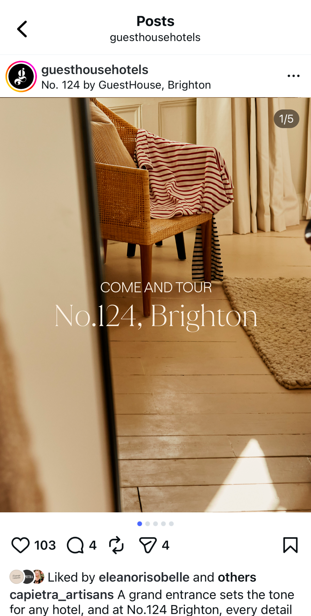 As Design Lead at GuestHouse Hotels, I led the visual identity and branding rollout for the group’s newest venture, No.124, Brighton. My work spanned art direction for photoshoots, branding design, printed collateral, and promotional content across GuestHouse’s digital and social channels.